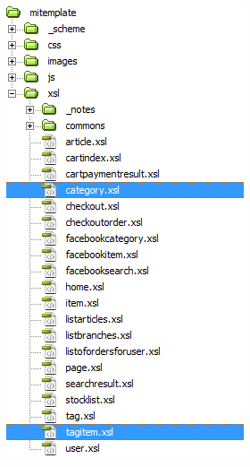 Los archivos category.xsl y tagitem.xsl