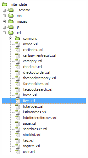 El detalle de un producto se representa a través de un archivo llamado item.xsl , ubicado en la carpeta xsl del directorio correspondiente al template en desarrollo.